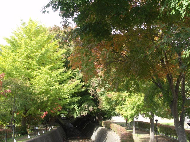 沿いの紅葉、西川(円形ホールそば)沿いは紅葉してきました。