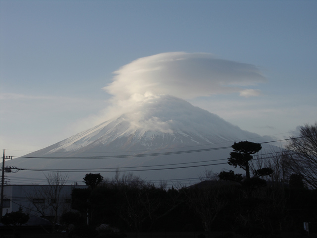 雲を見て天気を予測してきました。「富士山が笠をかぶれば